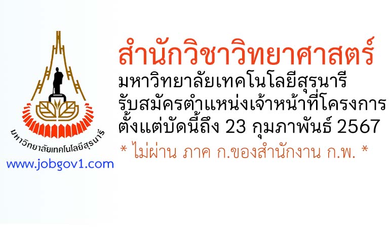สำนักวิชาวิทยาศาสตร์ มหาวิทยาลัยเทคโนโลยีสุรนารี รับสมัครลูกจ้างชั่วคราว ตำแหน่งเจ้าหน้าที่โครงการ ตั้งแต่บัดนี้ถึง 23 กุมภาพันธ์ 2567