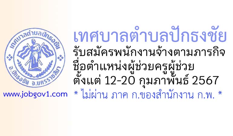 เทศบาลตำบลปักธงชัย รับสมัครพนักงานจ้างตามภารกิจ ตำแหน่งผู้ช่วยครูผู้ช่วย ตั้งแต่วันที่ 12-20 กุมภาพันธ์ 2567