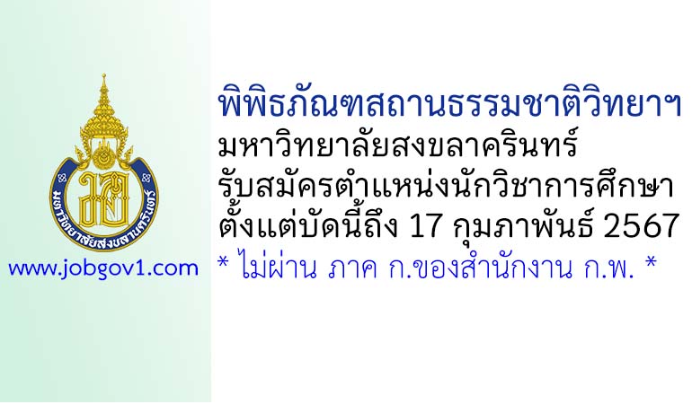พิพิธภัณฑสถานธรรมชาติวิทยาฯ มหาวิทยาลัยสงขลาครินทร์ รับสมัครตำแหน่งนักวิชาการศึกษา ตั้งแต่บัดนี้ถึง 17 กุมภาพันธ์ 2567