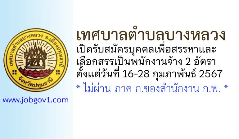 เทศบาลตำบลบางหลวง รับสมัครบุคคลเพื่อสรรหาและเลือกสรรเป็นพนักงานจ้าง 2 อัตรา ตั้งแต่วันที่ 16-28 กุมภาพันธ์ 2567