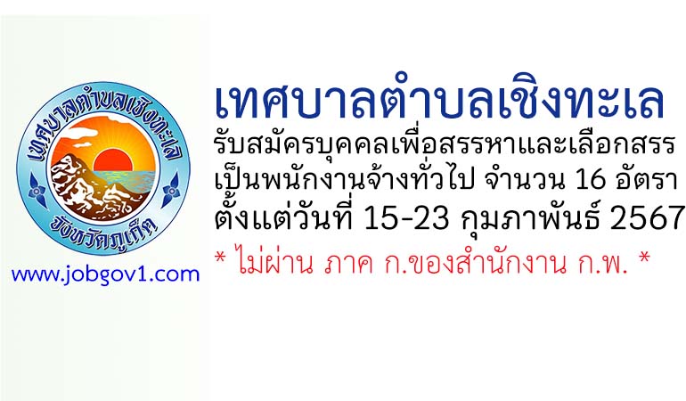 เทศบาลตำบลเชิงทะเล รับสมัครบุคคลเพื่อสรรหาและเลือกสรรเป็นพนักงานจ้างทั่วไป 16 อัตรา ตั้งแต่วันที่ 15-23 กุมภาพันธ์ 2567