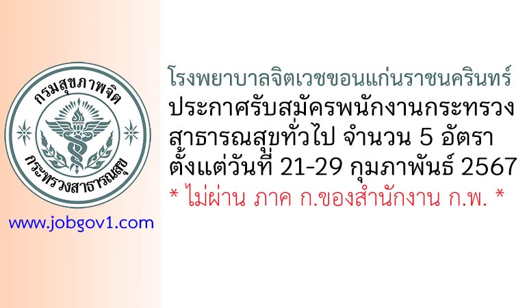 โรงพยาบาลจิตเวชขอนแก่นราชนครินทร์ รับสมัครพนักงานกระทรวงสาธารณสุขทั่วไป 5 อัตรา ตั้งแต่วันที่ 21-29 กุมภาพันธ์ 2567