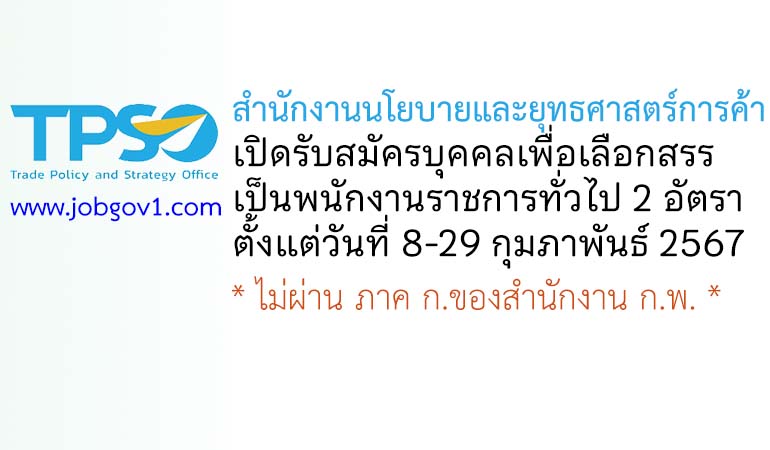 สำนักงานนโยบายและยุทธศาสตร์การค้า รับสมัครบุคคลเพื่อเลือกสรรเป็นพนักงานราชการทั่วไป 2 อัตรา ตั้งแต่วันที่ 8-29 กุมภาพันธ์ 2567