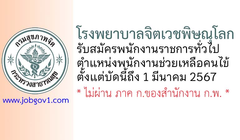 โรงพยาบาลจิตเวชพิษณุโลก รับสมัครพนักงานราชการทั่วไป ตำแหน่งพนักงานช่วยเหลือคนไข้ ตั้งแต่บัดนี้ถึง 1 มีนาคม 2567