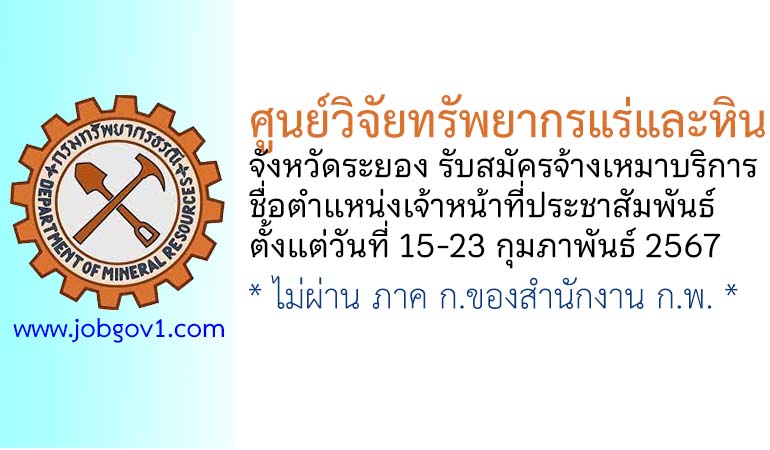 ศูนย์วิจัยทรัพยากรแร่และหิน จังหวัดระยอง รับสมัครจ้างเหมาบริการ ตำแหน่งเจ้าหน้าที่ประชาสัมพันธ์ ตั้งแต่วันที่ 15-23 กุมภาพันธ์ 2567