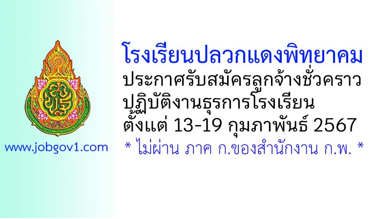 โรงเรียนปลวกแดงพิทยาคม รับสมัครลูกจ้างชั่วคราว ปฏิบัติงานธุรการโรงเรียน ตั้งแต่วันที่ 13-19 กุมภาพันธ์ 2567