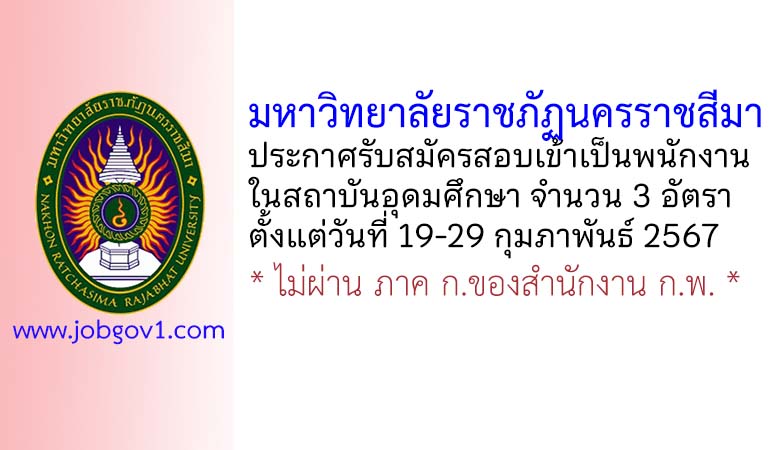 มหาวิทยาลัยราชภัฏนครราชสีมา รับสมัครพนักงานในสถาบันอุดมศึกษา 3 อัตรา ตั้งแต่วันที่ 19-29 กุมภาพันธ์ 2567