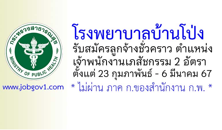 โรงพยาบาลบ้านโป่ง รับสมัครลูกจ้างชั่วคราว ตำแหน่งเจ้าพนักงานเภสัชกรรม 2 อัตรา ตั้งแต่ 23 กุมภาพันธ์ – 6 มีนาคม 2567