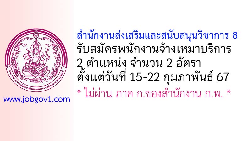 สำนักงานส่งเสริมและสนับสนุนวิชาการ 8 รับสมัครพนักงานจ้างเหมาบริการ 2 อัตรา ตั้งแต่วันที่ 15-22 กุมภาพันธ์ 2567
