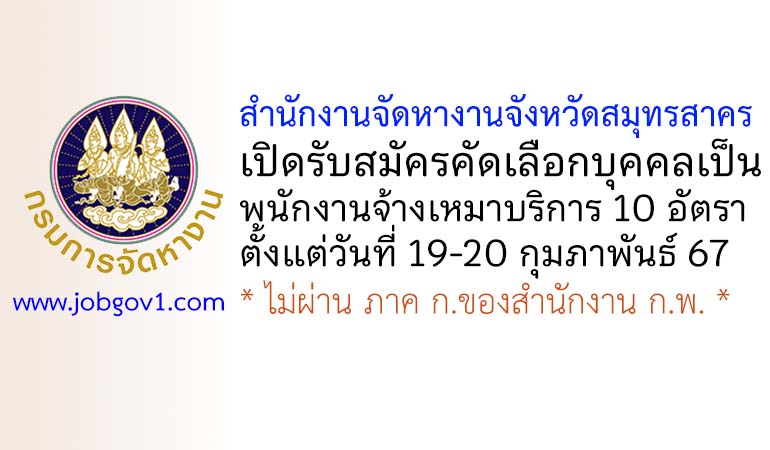 สำนักงานจัดหางานจังหวัดสมุทรสาคร รับสมัครพนักงานจ้างเหมาบริการ 10 อัตรา ตั้งแต่วันที่ 19-20 กุมภาพันธ์ 2567