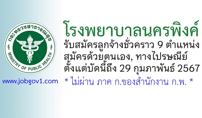 โรงพยาบาลนครพิงค์ รับสมัครลูกจ้างชั่วคราว 9 ตำแหน่ง ตั้งแต่บัดนี้ถึง 29 กุมภาพันธ์ 2567