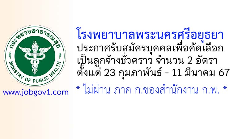 โรงพยาบาลพระนครศรีอยุธยา รับสมัครบุคคลเพื่อคัดเลือกเป็นลูกจ้างชั่วคราว 2 อัตรา ตั้งแต่ 23 กุมภาพันธ์ – 11 มีนาคม 2567