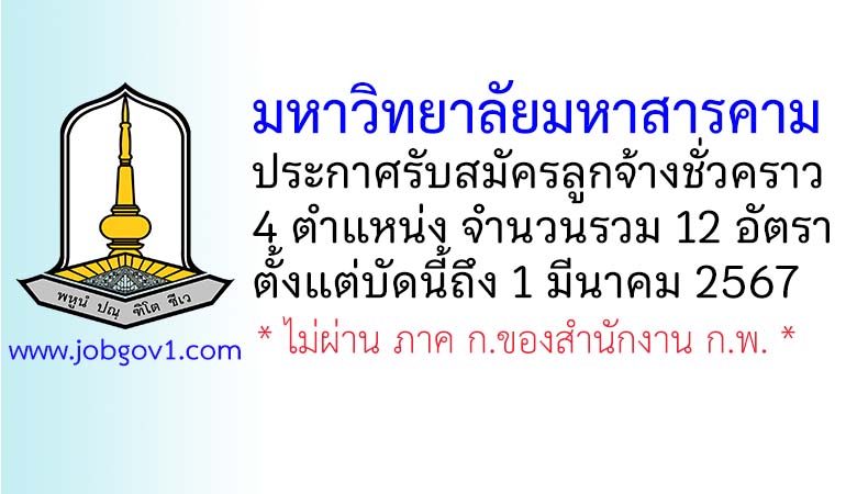 มหาวิทยาลัยมหาสารคาม รับสมัครลูกจ้างชั่วคราว 4 ตำแหน่ง 12 อัตรา ตั้งแต่บัดนี้ถึง 1 มีนาคม 2567