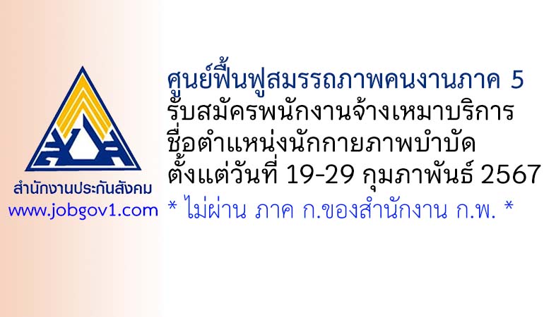 ศูนย์ฟื้นฟูสมรรถภาพคนงานภาค 5 รับสมัครพนักงานจ้างเหมาบริการ ตำแหน่งนักกายภาพบำบัด ตั้งแต่วันที่ 19-29 กุมภาพันธ์ 2567