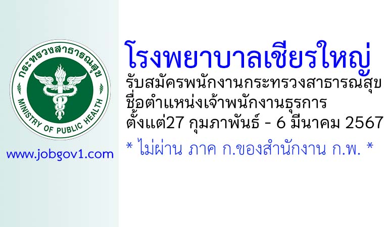 โรงพยาบาลเชียรใหญ่ รับสมัครพนักงานกระทรวงสาธารณสุขทั่วไป ตำแหน่งเจ้าพนักงานธุรการ ตั้งแต่27 กุมภาพันธ์ – 6 มีนาคม 2567
