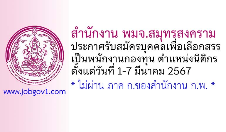 สำนักงาน พมจ.สมุทรสงคราม รับสมัครบุคคลเพื่อเลือกสรรเป็นพนักงานกองทุน ตำแหน่งนิติกร ตั้งแต่วันที่ 1-7 มีนาคม 2567