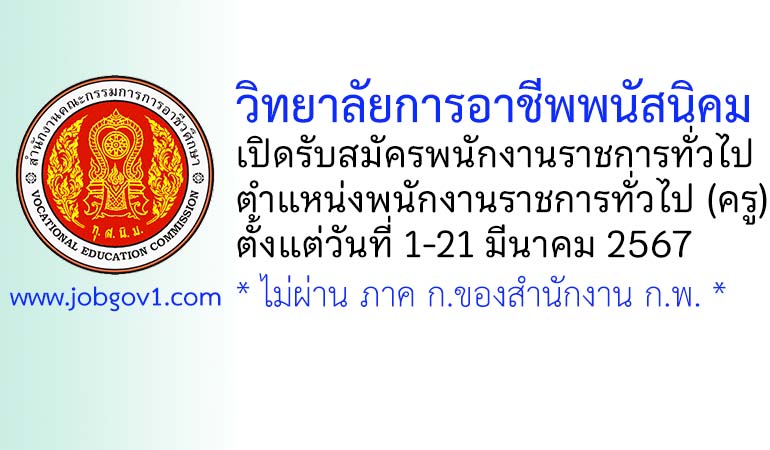 วิทยาลัยการอาชีพพนัสนิคม รับสมัครพนักงานราชการทั่วไป ตำแหน่งพนักงานราชการทั่วไป (ครู) ตั้งแต่วันที่ 1-21 มีนาคม 2567
