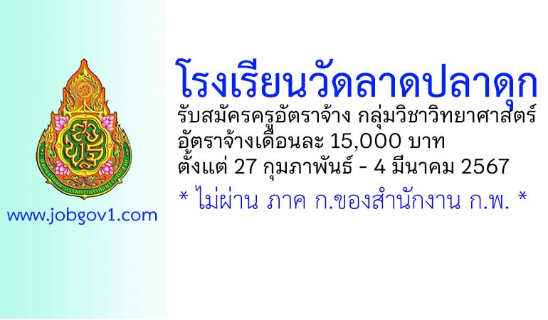 โรงเรียนวัดลาดปลาดุก รับสมัครครูอัตราจ้าง กลุ่มวิชาวิทยาศาสตร์ ตั้งแต่ 27 กุมภาพันธ์ – 4 มีนาคม 2567