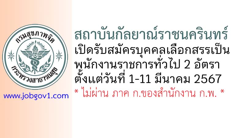 สถาบันกัลยาณ์ราชนครินทร์ รับสมัครบุคคลเลือกสรรเป็นพนักงานราชการทั่วไป 2 อัตรา ตั้งแต่วันที่ 1-11 มีนาคม 2567