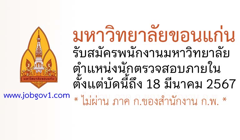 มหาวิทยาลัยขอนแก่น รับสมัครพนักงานมหาวิทยาลัย ตำแหน่งนักตรวจสอบภายใน ตั้งแต่บัดนี้ถึง 18 มีนาคม 2567