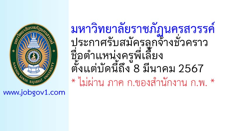 มหาวิทยาลัยราชภัฏนครสวรรค์ รับสมัครลูกจ้างชั่วคราว ตำแหน่งครูพี่เลี้ยง ตั้งแต่บัดนี้ถึง 8 มีนาคม 2567