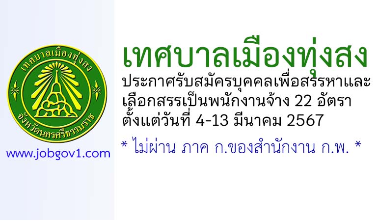เทศบาลเมืองทุ่งสง รับสมัครบุคคลเพื่อสรรหาและเลือกสรรเป็นพนักงานจ้าง 22 อัตรา ตั้งแต่วันที่ 4-13 มีนาคม 2567