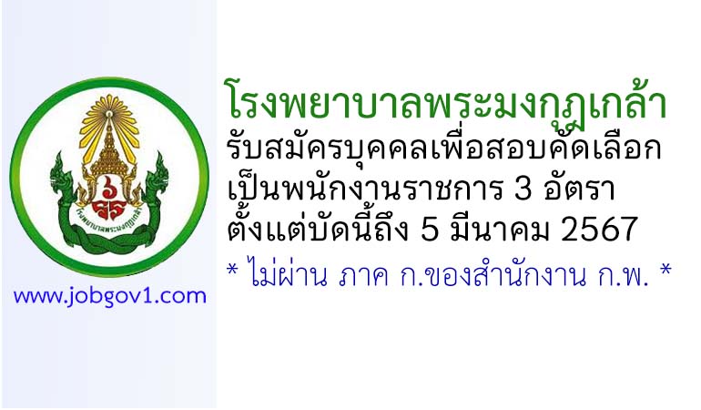 โรงพยาบาลพระมงกุฎเกล้า รับสมัครบุคคลเพื่อสอบคัดเลือกเป็นพนักงานราชการ 3 อัตรา ตั้งแต่บัดนี้ถึง 5 มีนาคม 2567