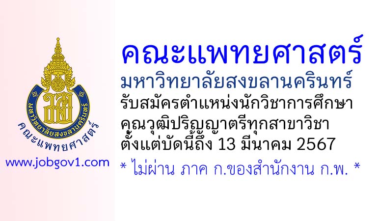 คณะแพทยศาสตร์ มหาวิทยาลัยสงขลานครินทร์ รับสมัครตำแหน่งนักวิชาการศึกษา ตั้งแต่บัดนี้ถึง 13 มีนาคม 2567