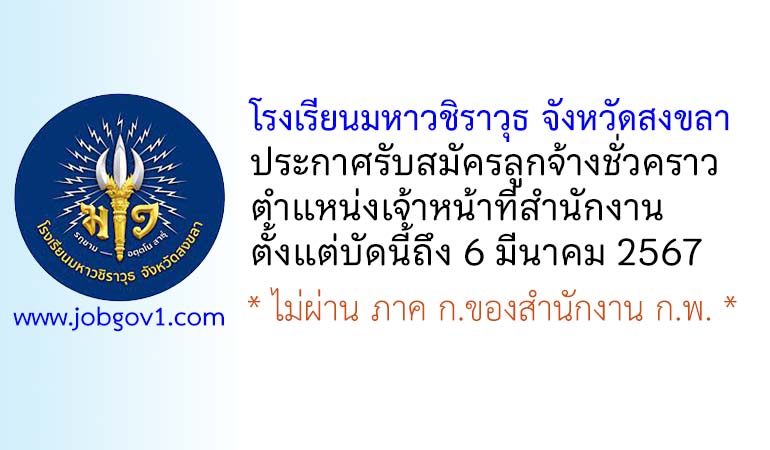 โรงเรียนมหาวชิราวุธ จังหวัดสงขลา รับสมัครลูกจ้างชั่วคราว ตำแหน่งเจ้าหน้าที่สำนักงาน ตั้งแต่บัดนี้ถึง 6 มีนาคม 2567