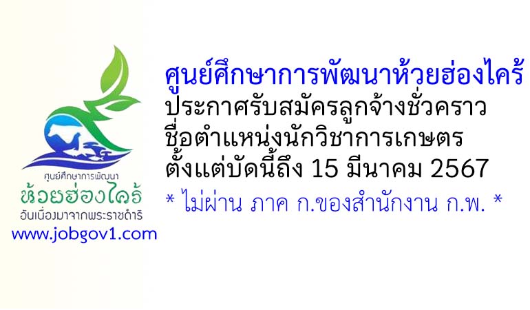 ศูนย์ศึกษาการพัฒนาห้วยฮ่องไคร้ รับสมัครลูกจ้างชั่วคราว ตำแหน่งนักวิชาการเกษตร ตั้งแต่บัดนี้ถึง 15 มีนาคม 2567
