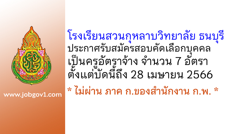 โรงเรียนสวนกุหลาบวิทยาลัย ธนบุรี รับสมัครสอบคัดเลือกบุคคลเป็นครูอัตราจ้าง 7 อัตรา ตั้งแต่บัดนี้ถึง 28 เมษายน 2566