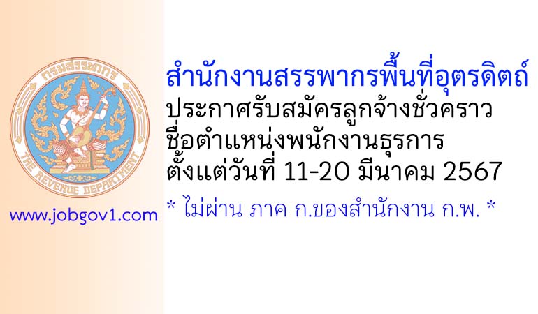 สำนักงานสรรพากรพื้นที่อุตรดิตถ์ รับสมัครลูกจ้างชั่วคราว ตำแหน่งพนักงานธุรการ ตั้งแต่วันที่ 11-20 มีนาคม 2567