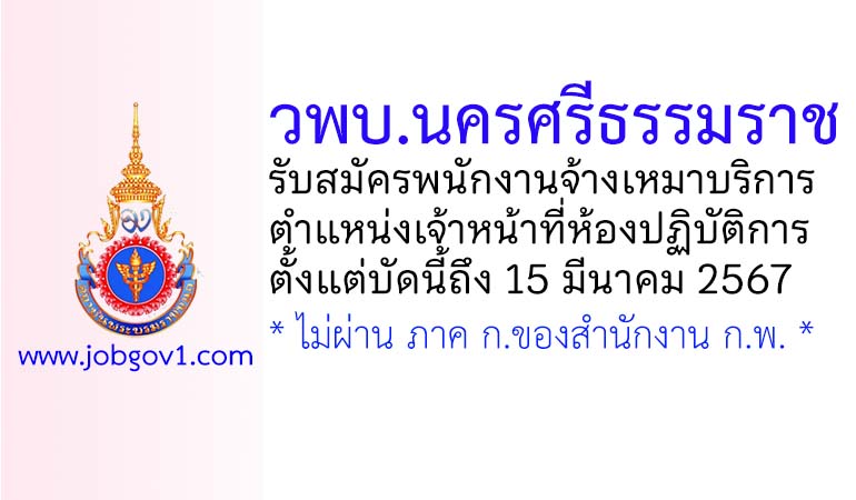 วิทยาลัยพยาบาลบรมราชชนนี นครศรีธรรมราช รับสมัครพนักงานจ้างเหมาบริการ ตำแหน่งเจ้าหน้าที่ห้องปฏิบัติการ ตั้งแต่บัดนี้ถึง 15 มีนาคม 2567