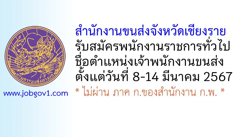 สำนักงานขนส่งจังหวัดเชียงราย รับสมัครพนักงานราชการทั่วไป ตำแหน่งเจ้าพนักงานขนส่ง ตั้งแต่วันที่ 8-14 มีนาคม 2567