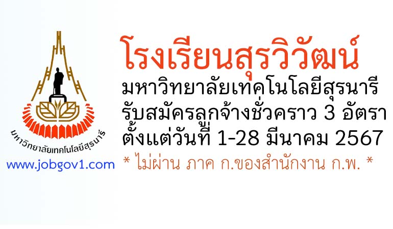 โรงเรียนสุรวิวัฒน์ มหาวิทยาลัยเทคโนโลยีสุรนารี รับสมัครลูกจ้างชั่วคราว 3 อัตรา ตั้งแต่วันที่ 1-28 มีนาคม 2567