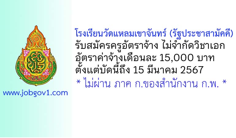 โรงเรียนวัดแหลมเขาจันทร์ (รัฐประชาสามัคคี) รับสมัครครูอัตราจ้าง ไม่จำกัดวิชาเอก ตั้งแต่บัดนี้ถึง 15 มีนาคม 2567