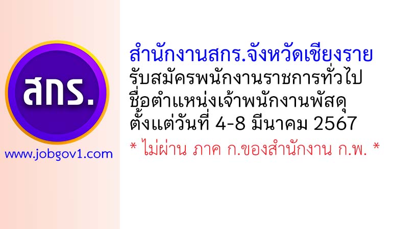 สำนักงานส่งเสริมการเรียนรู้จังหวัดเชียงราย รับสมัครพนักงานราชการทั่วไป ตำแหน่งเจ้าพนักงานพัสดุ ตั้งแต่วันที่ 4-8 มีนาคม 2567