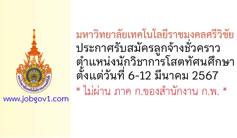 มหาวิทยาลัยเทคโนโลยีราชมงคลศรีวิชัย รับสมัครลูกจ้างชั่วคราว ตำแหน่งนักวิชาการโสตทัศนศึกษา ตั้งแต่วันที่ 6-12 มีนาคม 2567