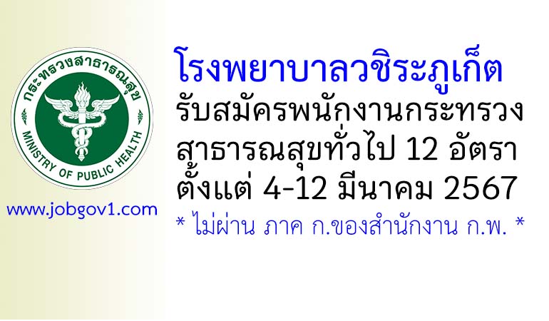 โรงพยาบาลวชิระภูเก็ต รับสมัครพนักงานกระทรวงสาธารณสุขทั่วไป 12 อัตรา ตั้งแต่วันที่ 4-12 มีนาคม 2567