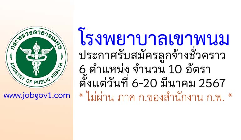 โรงพยาบาลเขาพนม รับสมัครลูกจ้างชั่วคราว 6 ตำแหน่ง 10 อัตรา ตั้งแต่วันที่ 6-20 มีนาคม 2567