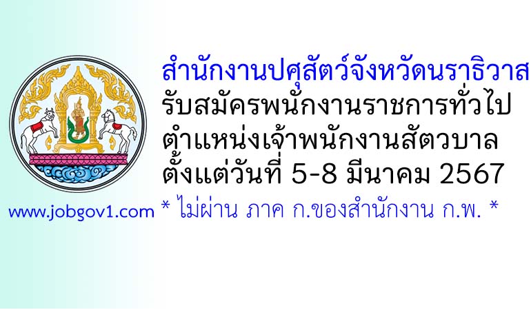 สำนักงานปศุสัตว์จังหวัดนราธิวาส รับสมัครพนักงานราชการทั่วไป ตำแหน่งเจ้าพนักงานสัตวบาล ตั้งแต่วันที่ 5-8 มีนาคม 2567