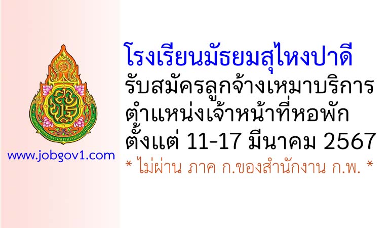 โรงเรียนมัธยมสุไหงปาดี รับสมัครลูกจ้างเหมาบริการ ตำแหน่งเจ้าหน้าที่หอพัก ตั้งแต่วันที่ 11-17 มีนาคม 2567