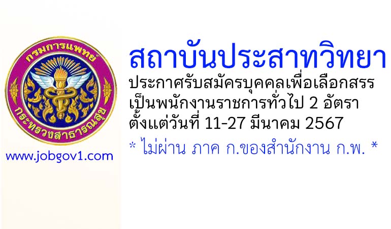 สถาบันประสาทวิทยา รับสมัครบุคคลเพื่อเลือกสรรเป็นพนักงานราชการทั่วไป 2 อัตรา ตั้งแต่วันที่ 11-27 มีนาคม 2567