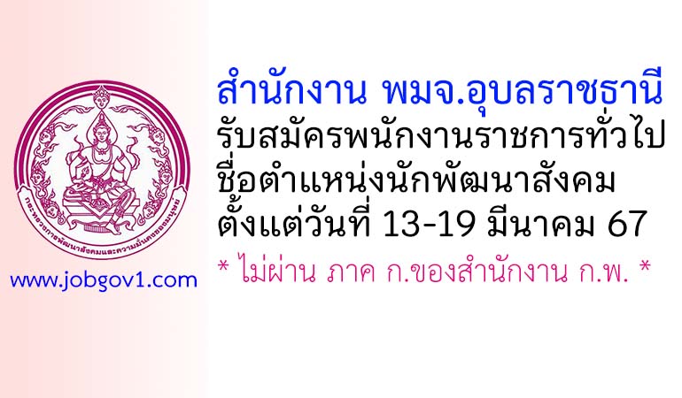 สำนักงาน พมจ.อุบลราชธานี รับสมัครพนักงานราชการทั่วไป ตำแหน่งนักพัฒนาสังคม ตั้งแต่วันที่ 13-19 มีนาคม 2567