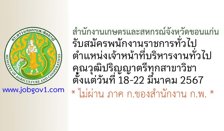 สำนักงานเกษตรและสหกรณ์จังหวัดขอนแก่น รับสมัครพนักงานราชการทั่วไป ตำแหน่งเจ้าหน้าที่บริหารงานทั่วไป ตั้งแต่วันที่ 18-22 มีนาคม 2567