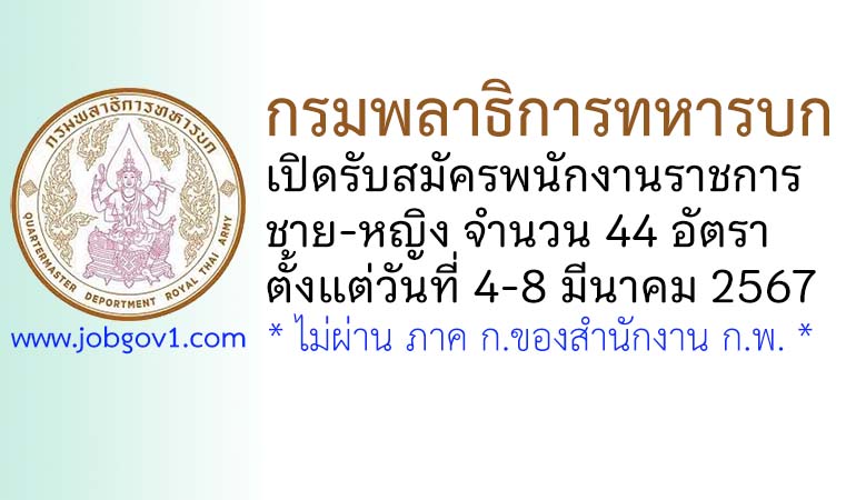 กรมพลาธิการทหารบก รับสมัครพนักงานราชการ 44 อัตรา ตั้งแต่วันที่ 4-8 มีนาคม 2567