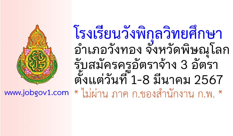 โรงเรียนวังพิกุลวิทยศึกษา รับสมัครครูอัตราจ้าง 3 อัตรา ตั้งแต่วันที่ 1-8 มีนาคม 2567