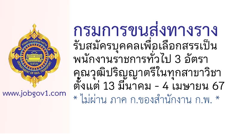 กรมการขนส่งทางราง รับสมัครบุคคลเพื่อเลือกสรรเป็นพนักงานราชการทั่วไป 3 อัตรา ตั้งแต่ 13 มีนาคม – 4 เมษายน 2567