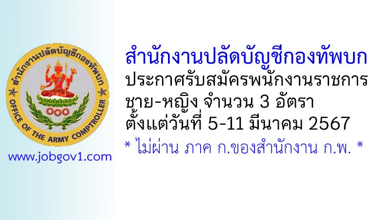 สำนักงานปลัดบัญชีกองทัพบก รับสมัครพนักงานราชการ 3 อัตรา ตั้งแต่วันที่ 5-11 มีนาคม 2567