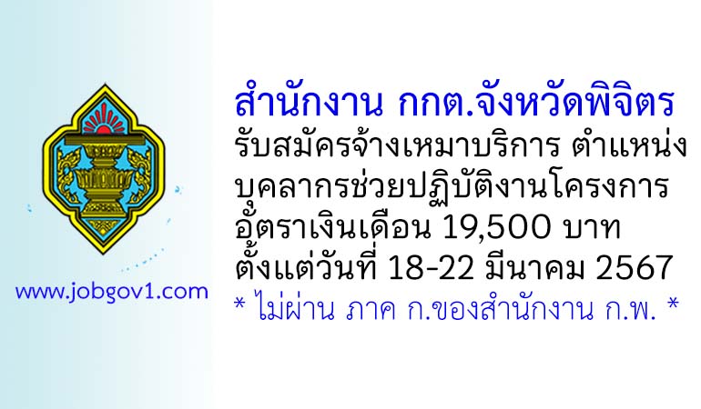 สำนักงาน กกต.จังหวัดพิจิตร รับสมัครจ้างเหมาบริการ ตำแหน่งบุคลากรช่วยปฏิบัติงานโครงการ ตั้งแต่วันที่ 18-22 มีนาคม 2567